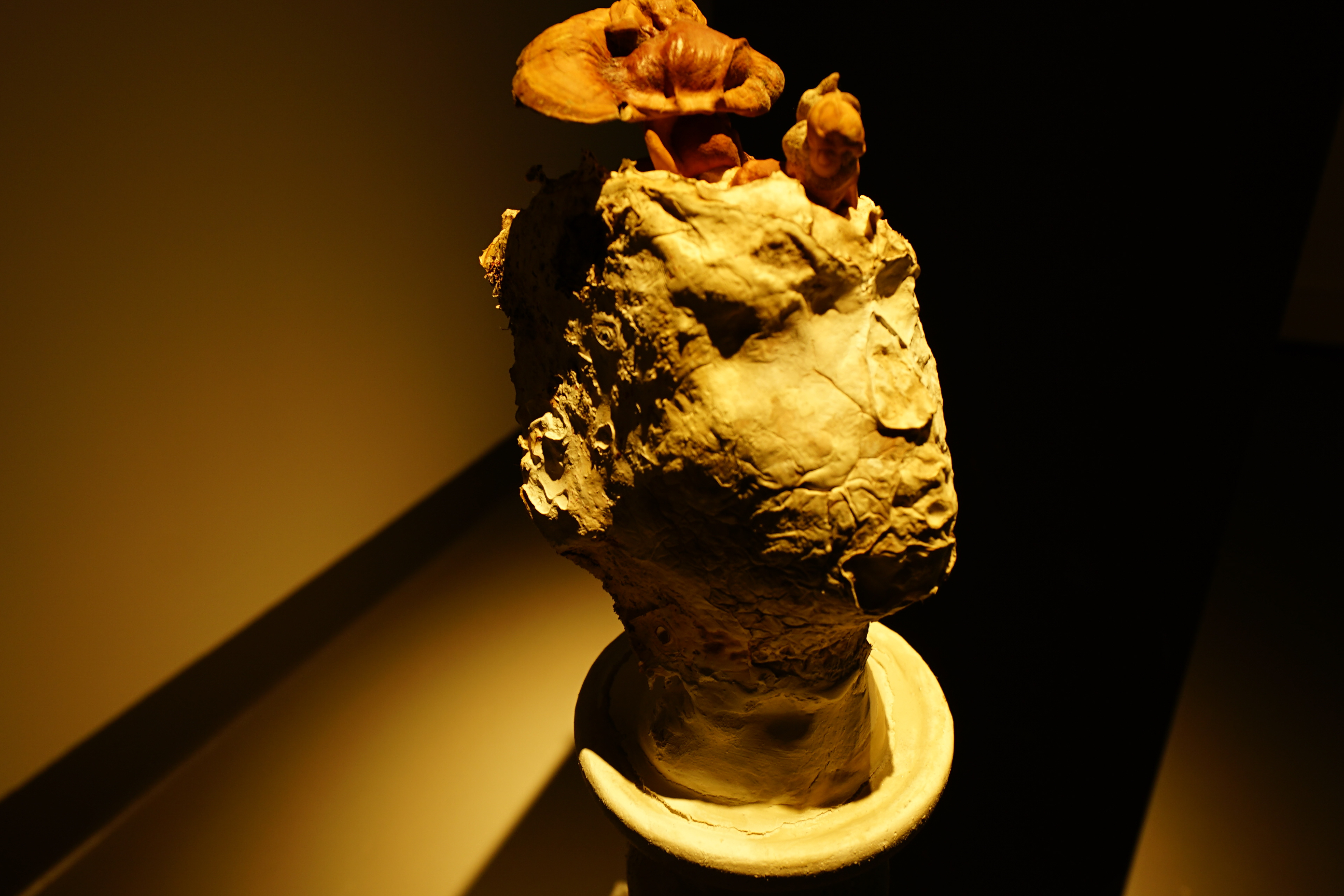 My finished Mycelium Head, QCA Gallery 2022